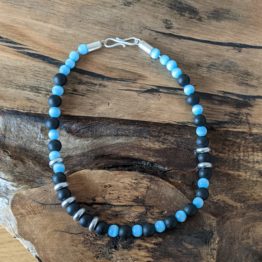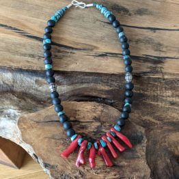 Glaskette mit Koralle, Türkis und Silber