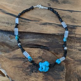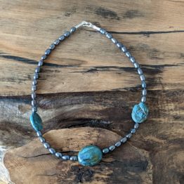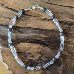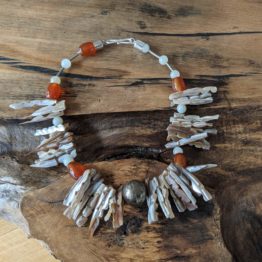 Perlmuttkette mit Achat, Karneol und Silberkugel