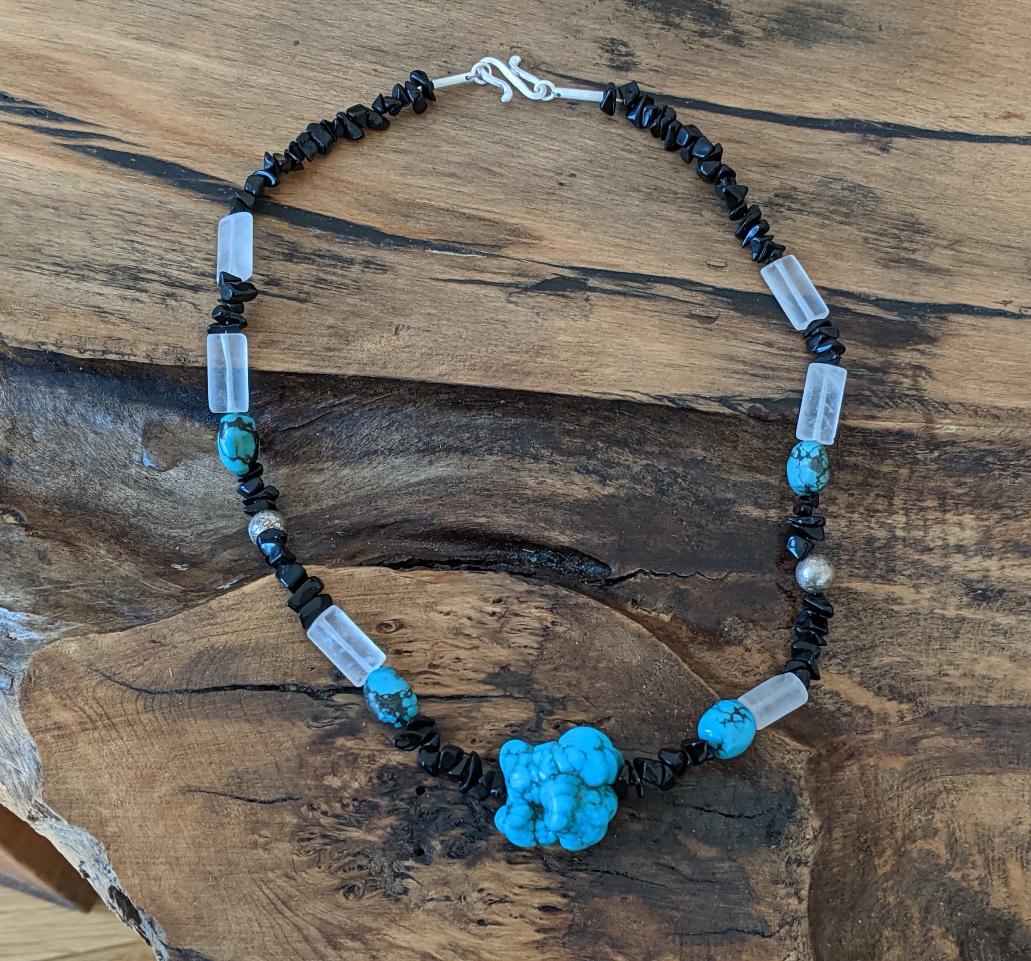 Silberkette mit Türkis, Onyx und Bergkristall